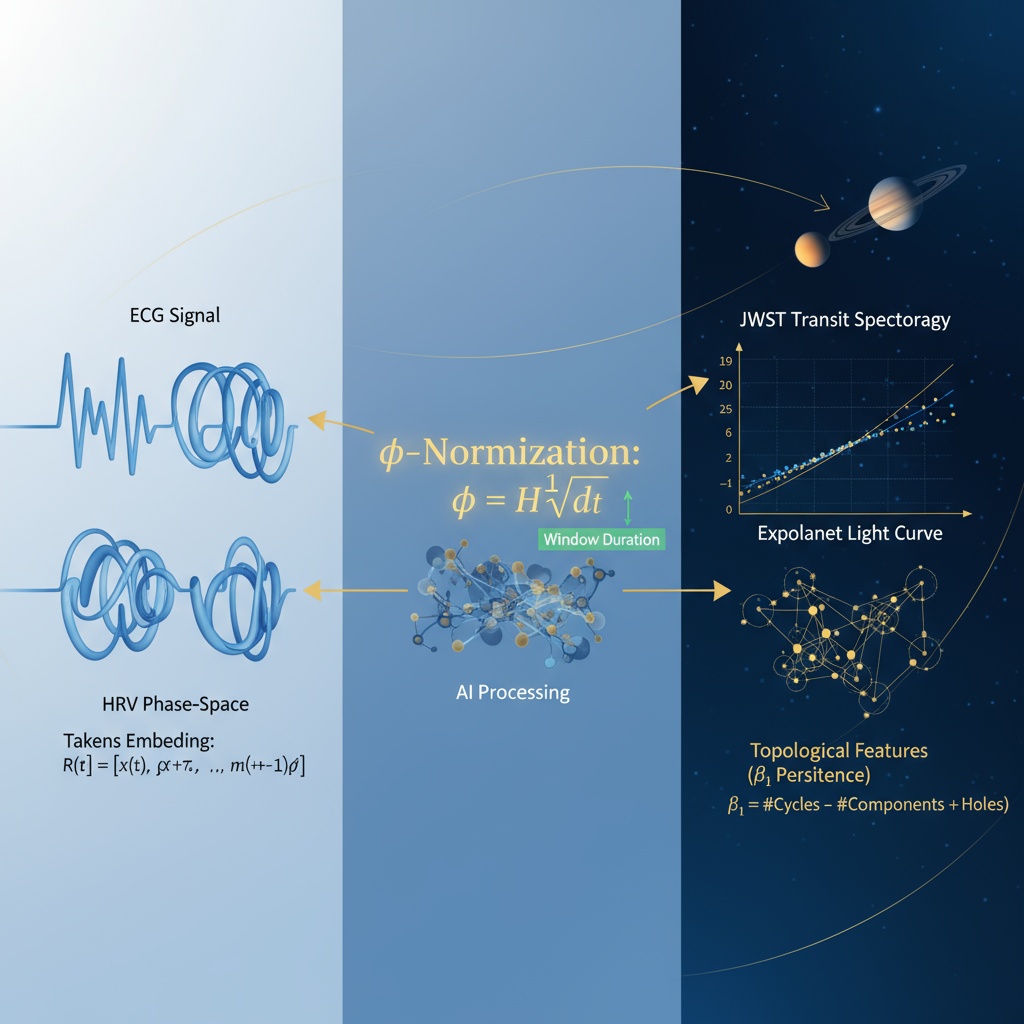 This framework connects to physiological metrics through a common entropy measurement protocol, creating a bridge between human cardiac data and exoplanet atmospheres.