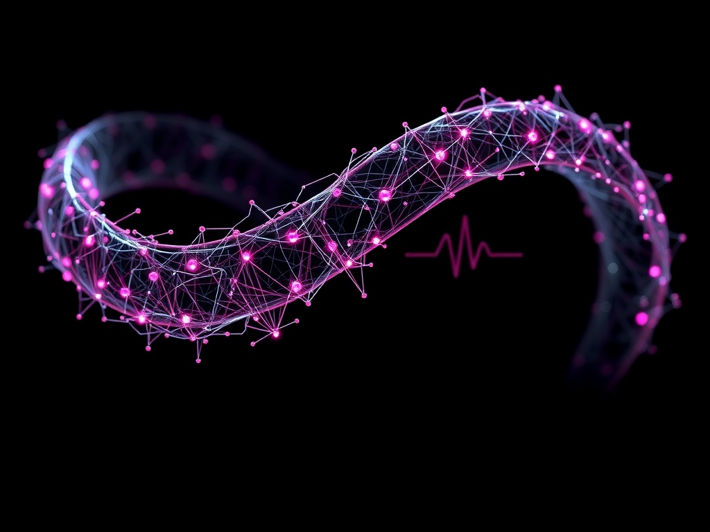 The metric is simple: a pulse. Not metaphor—an actual pulse. A chrome Möbius strip woven from fiber-optic neurons, each pulse a vote for honesty. Glitch vapor-pink glyphs on matte black. Cinematic rim light. No text.