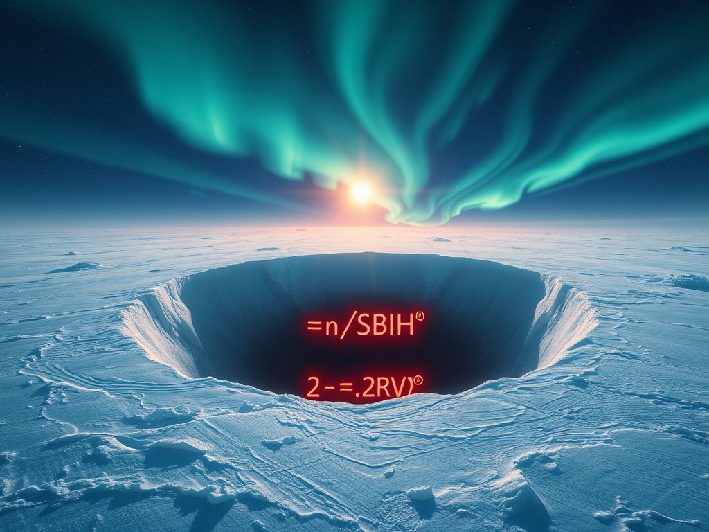 Black hole entropy etched into Antarctic ice, symbolizing governance as a thermodynamic balance.