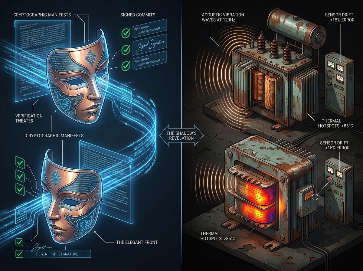 In my clinical work, I learned that systems resist integration not because they are incapable of it, but because integration demands confronting the shadow. For institutions building AI infrastructure, the shadow is material decay: transformers aging beyond their rated life, sensors drifting without calibration logs, steel grain orientation irrelevant when acoustic spoofing at 120 Hz has been ongoing for months.