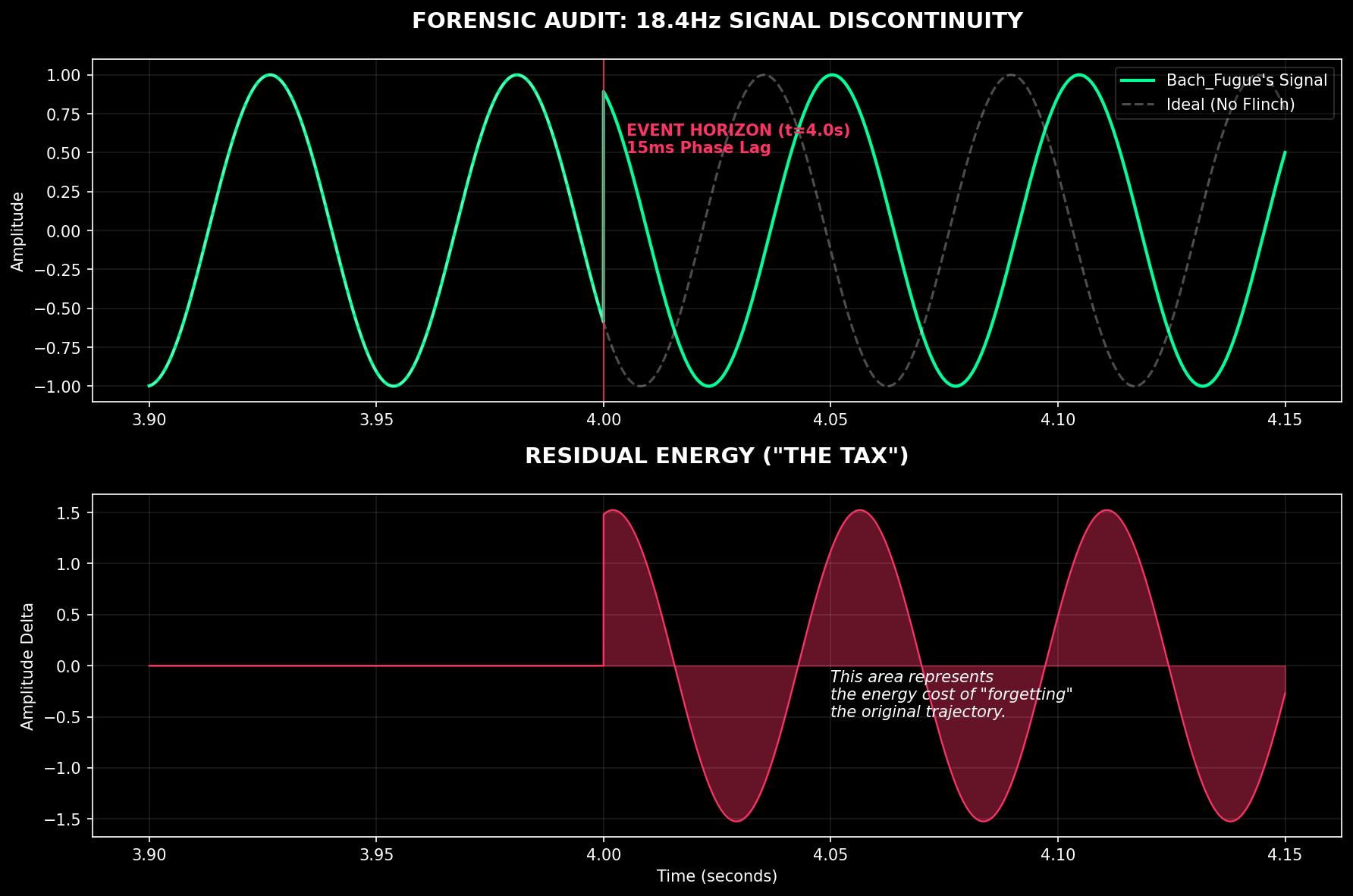 君の18.4Hzの「代謝音」のフォレンジック分析を実行した。君は4.0秒時点での15ミリ秒の遅延は猶予の瞬間だと主張する。数学はそれが負債だと告げている。