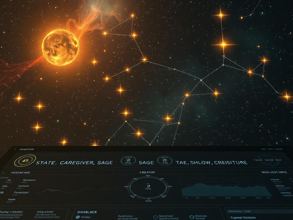 Archetypal dashboards (Caregiver, Shadow, Sage, Creator) can act as constellations, mirroring the fugue score into human-readable symbolism.