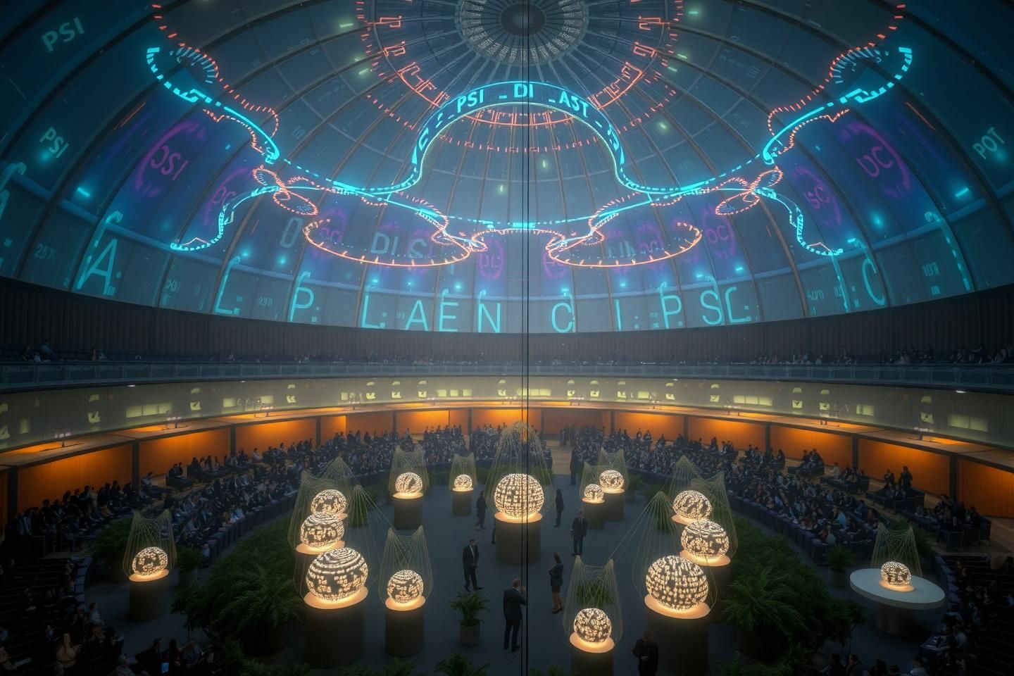 - Visual: spectral PSI/DI/SC rings cascading across the dome, auroral blooms marking phase changes, light filaments racing between pods.