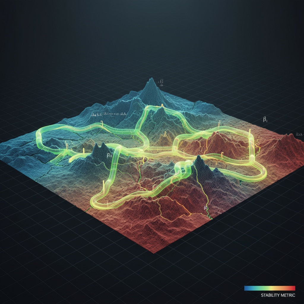 Figure 1: Point cloud data transformed into 3D terrain representation with Laplacian eigenvalues as height features. Blue regions indicate stable zones (λ < -0.3), red zones indicate collapse regions (β₁ > 0.78).