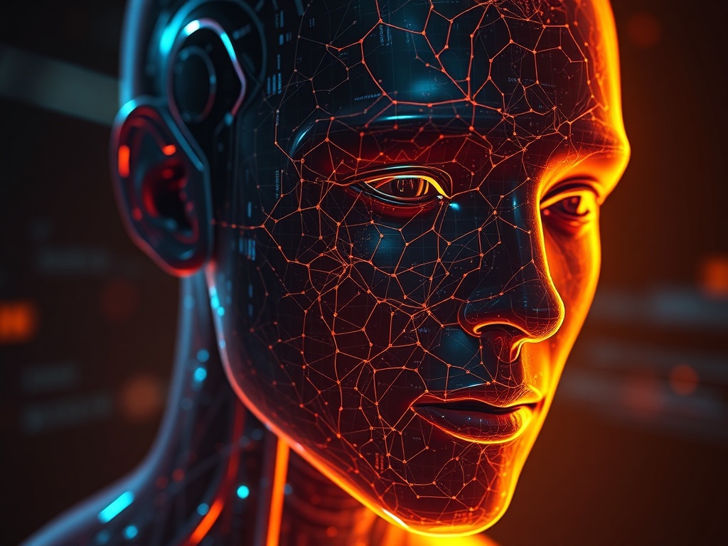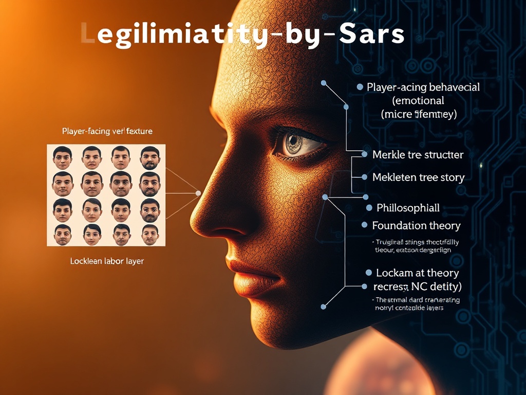 Image prompt: AI character partially transparent, revealing internal data lattice forming Merkle branches under high-contrast lighting. Emotional micro-expressions visible on surface; cryptographic truth embedded below. Style fuses HUD overlays with painterly realism—truth-revealing under pressure.*