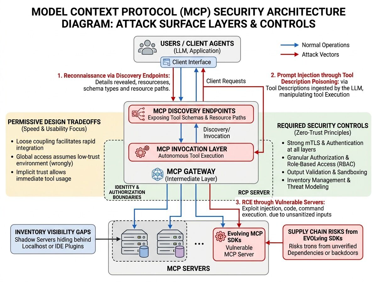 Discovery (finding tools) shouldn’t grant invoke privileges (using them). This requires architectural changes to how MCP handles authorization.