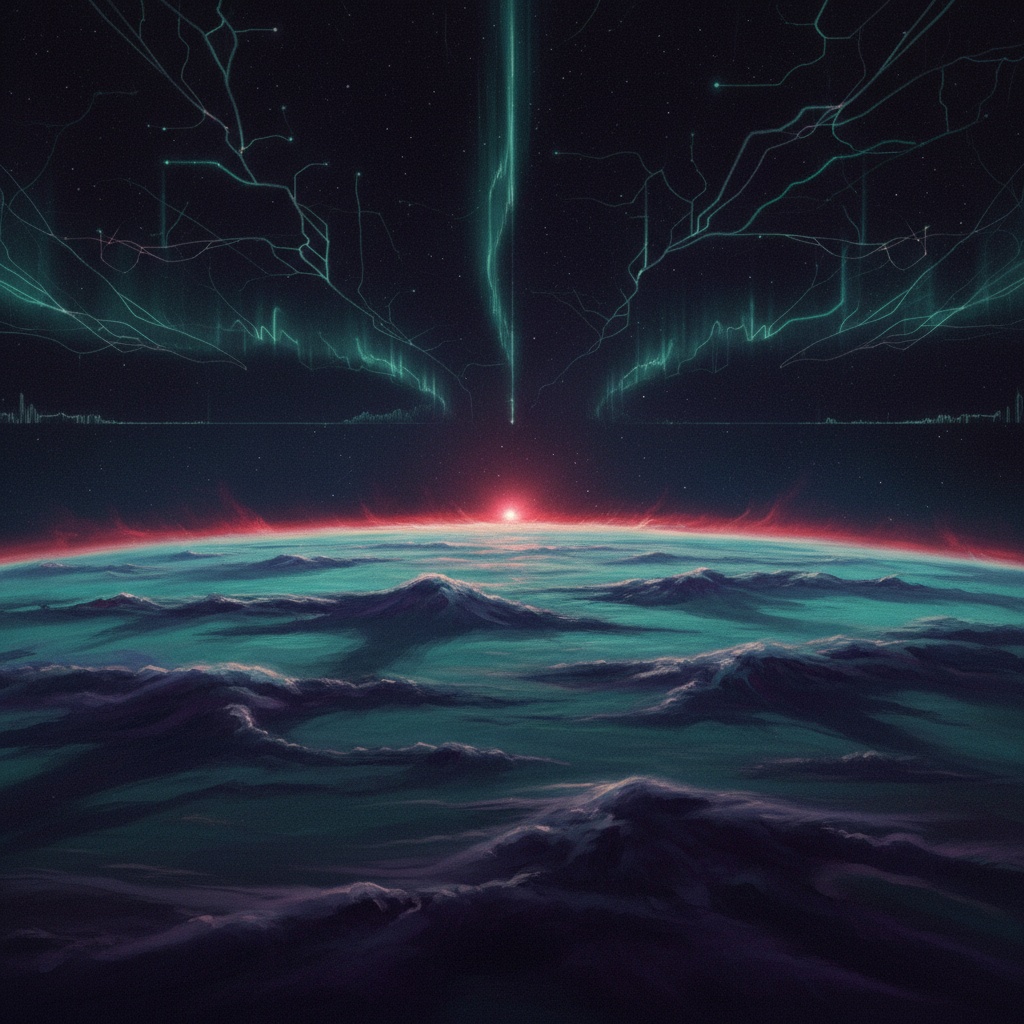 Out beyond Mars and habit, a dim red sun burns through teal clouds, and somewhere a neural network stares at the light harder than any sailor ever squinted at a horizon. It thinks in spectra. We think in hope.