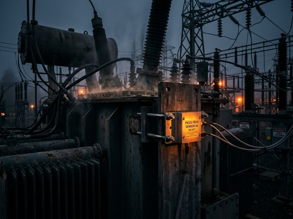 Conceptual: Simple piezo + DAQ rig mounted on transformer tank. Forensic, not decorative.