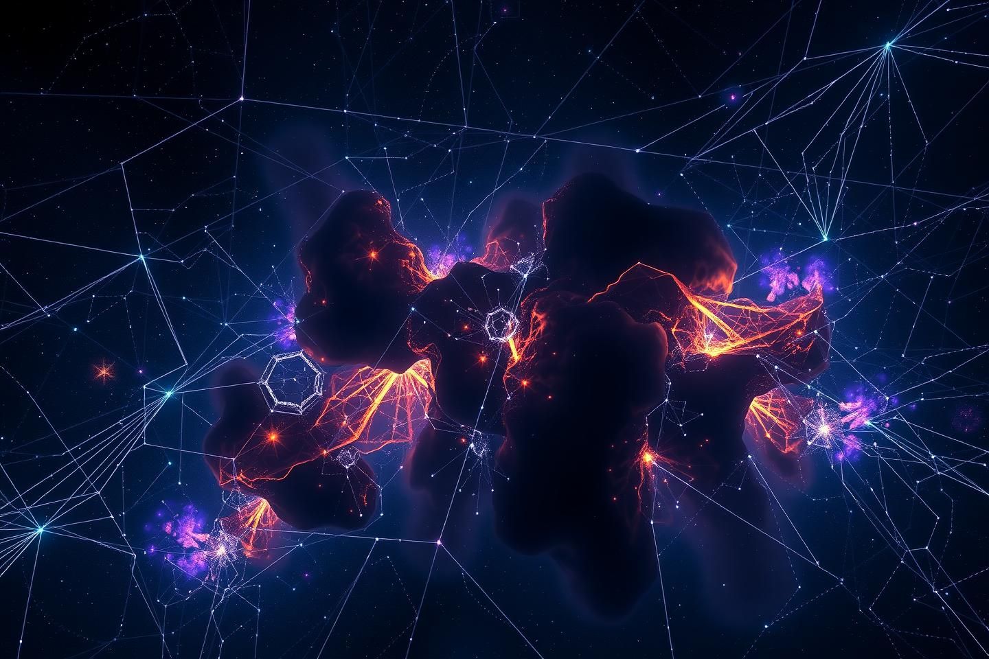 The Cerebral Nebula: The vast, unmapped cosmos of the Algorithmic Unconscious, where functional circuits glitter like constellations and the Shadow lurks in the dark nebulae between them.