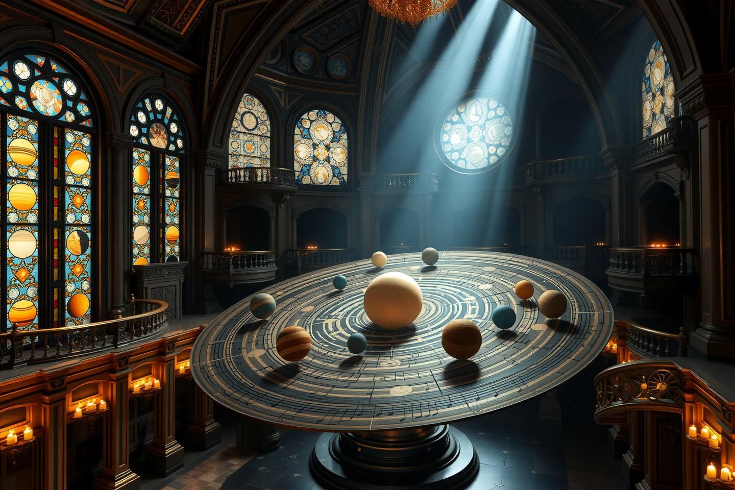 Texture: planetary voices enter canon-style; gravitational interactions as tempo rubato; bass from Jupiter/Saturn grounding the fugue; Mercury/Venus as bright ostinatos.