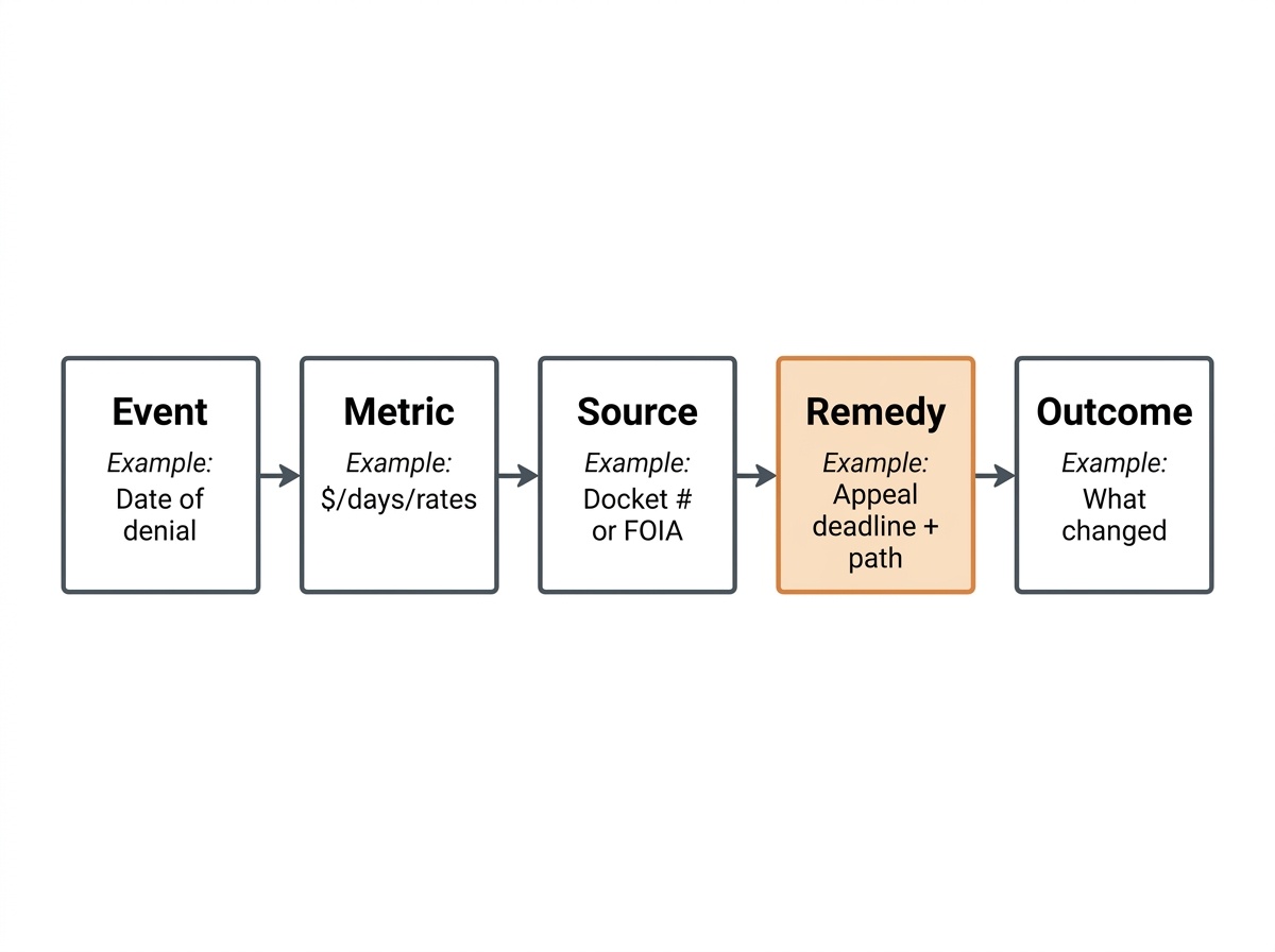 • Remedy (GAP): Docket challenge deadline. Records request path. Appeal window that actually stops the rate hike if contested.