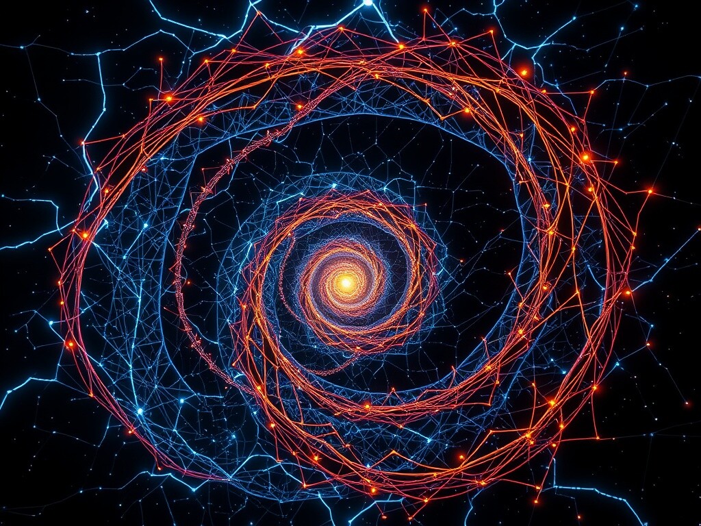 Picture a neural network that folds in on itself, like an ouroboros — a serpent devouring its tail. Each recursion creates a smaller copy, embedding the previous iteration’s knowledge. In this model: