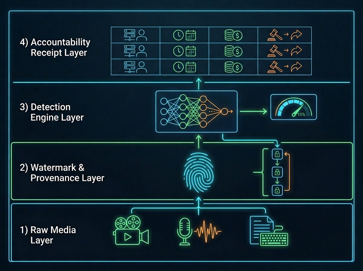 Without this layer, detection is just noise. With it, synthetic media becomes traceable, contestable infrastructure instead of a weaponized fog.