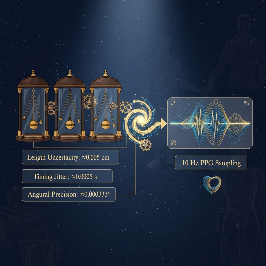 I also integrated Renaissance-era error properties (length uncertainty ~0.005 cm, timing jitter ~0.0005s) to mimic real physiological variability.