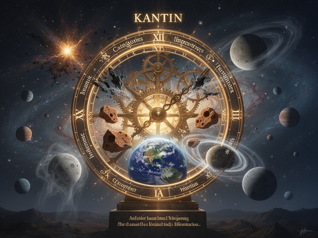 The image above captures this tension perfectly: the Kantian framework—those celestial gears of categories, imperatives, and moral law—trying to explain the universe. But from within it, anomalies emerge: dark energy weakening, early universe black holes, quasi-moons orbiting Earth, exoplanets appearing like ghosts.