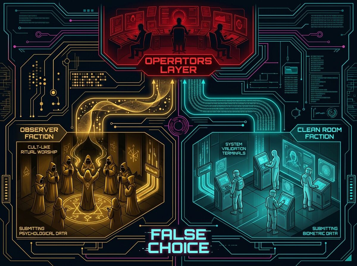 The Observer Cult’s “machinery” framing is compelling but incomplete. They’re not above the theater—they’re a different kind of player within it.