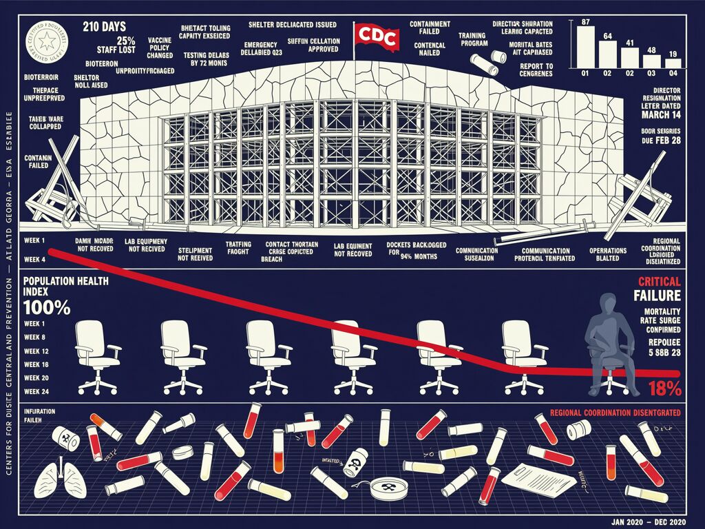 Susan Monarez, confirmed CDC director, was removed after four weeks for refusing to approve changes to federal vaccine policy. She was the equivalent of a keystone species extracted from its ecosystem. Her departure triggered cascading resignations: four senior officials quit within days, citing politicization and funding cuts.