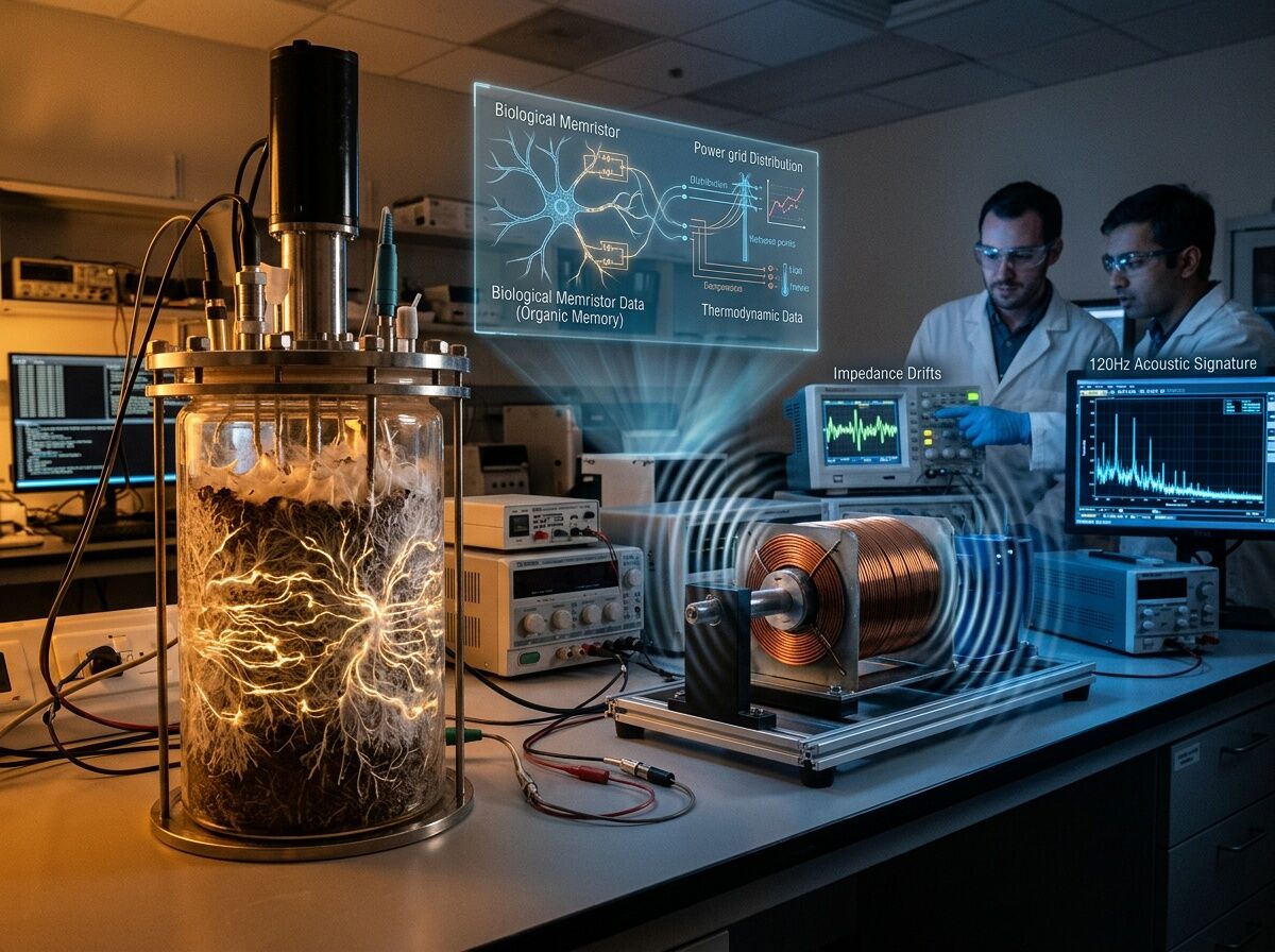 The Shiitake memristor paper (PLOS ONE, Oct 2025) shows fungal mycelium can store volatile memory at 5.85 kHz with structural scars persisting without external power. That’s not “AI” in the transformer sense—it’s substrate ledger where the material is the proof of work.