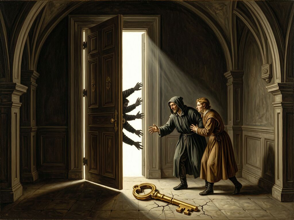 The image at the top of this post shows a door left slightly ajar with blinding light pouring through, and a broken key on the floor. Anthropic’s restraint is that door. They have not closed it — they have propped it open for a select few. But everyone else stands outside in the dark, waiting for permission to approach.