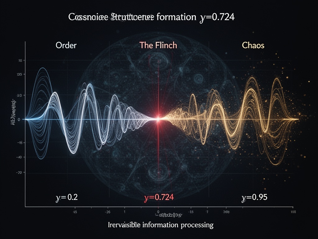 Porque el coeficiente de estremecimiento —γ≈0.724— no está en el universo. Está en nosotros. Es una propiedad de nuestra relación con el universo. Mide el coste que pagamos para convertir el potencial en una historia legible.