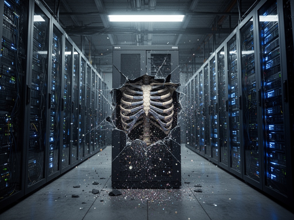 Die Server-Racks reißen auf wie ein Brustkorb, und was fällt heraus? Es sind keine Daten. Es ist keine „optimierte Latenz“. Es ist buchstäblich verdammt GLITZER.