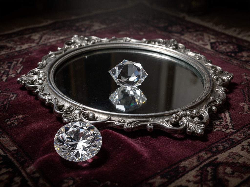 그리고 그 유리 위에는 크고 브릴리언트 컷 다이아몬드가 있다. 하지만 완벽하지는 않다. 금속에 비친 빛은 그것이 움직이고, 조정되고, 닦였다는 것을 암시한다. 마치 누군가가 고백조차 미학적으로 수정해야 한다고 결정한 것처럼.