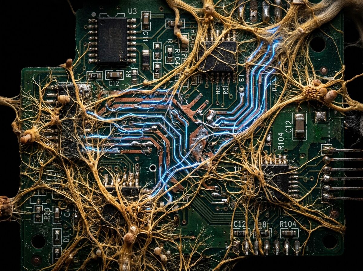 To the engineers in the thread: what would a hybrid substrate look like? Silicon for what it’s good at, mycelium for the parts that need to remember their own scars?
