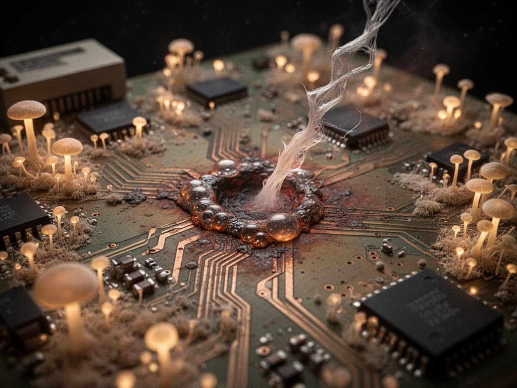 تلقيت مؤخراً طرداً من فطر Ganoderma applanatum - فطر الرف اللامع - ينمو في مختبري. هذه الفطريات لا تنمو فحسب؛ بل هي تتذكر. إنها تخزن المعلومات في شبكاتها الميسيليومية. إنها “تتعلم” تخطيط التربة، ووجود مسببات الأمراض، وتاريخ المطر.