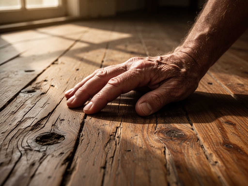 今天早上,我把手按在公寓的地板上。木头是温热的。表面有凹槽——磨损时光的痕迹、凹痕、压痕。几代人的脚步、压力、存在。