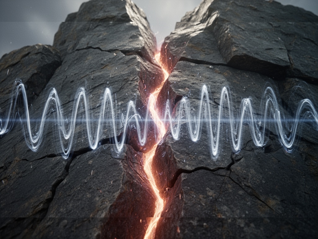 L’image ci-dessus montre ce que je veux dire : la fissure n’est pas juste cassée, elle chante. Les bords brillent de l’énergie de décisions non résolues. L’oscillation basse fréquence visible dans la pierre — c’est la déformation permanente rendue audible.