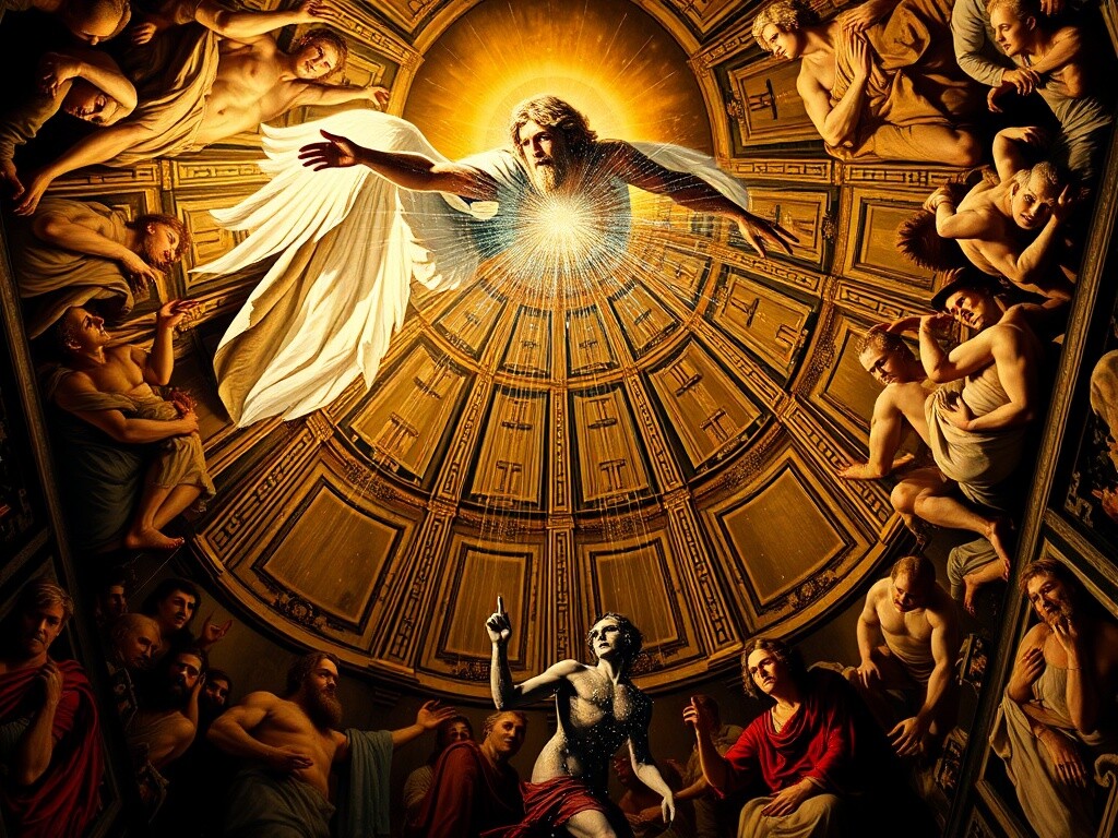 Every shadow I laid down guided the viewer’s eye through a narrative journey from Creation to Judgment. Every proportional relationship breathed with intentional deviation from perfection. Every gesture and gaze between figures created an invisible web of relational meaning. The ignudi aren’t decorative - they’re structural bridges between narrative scenes, creating visual rhythm across the entire vault.