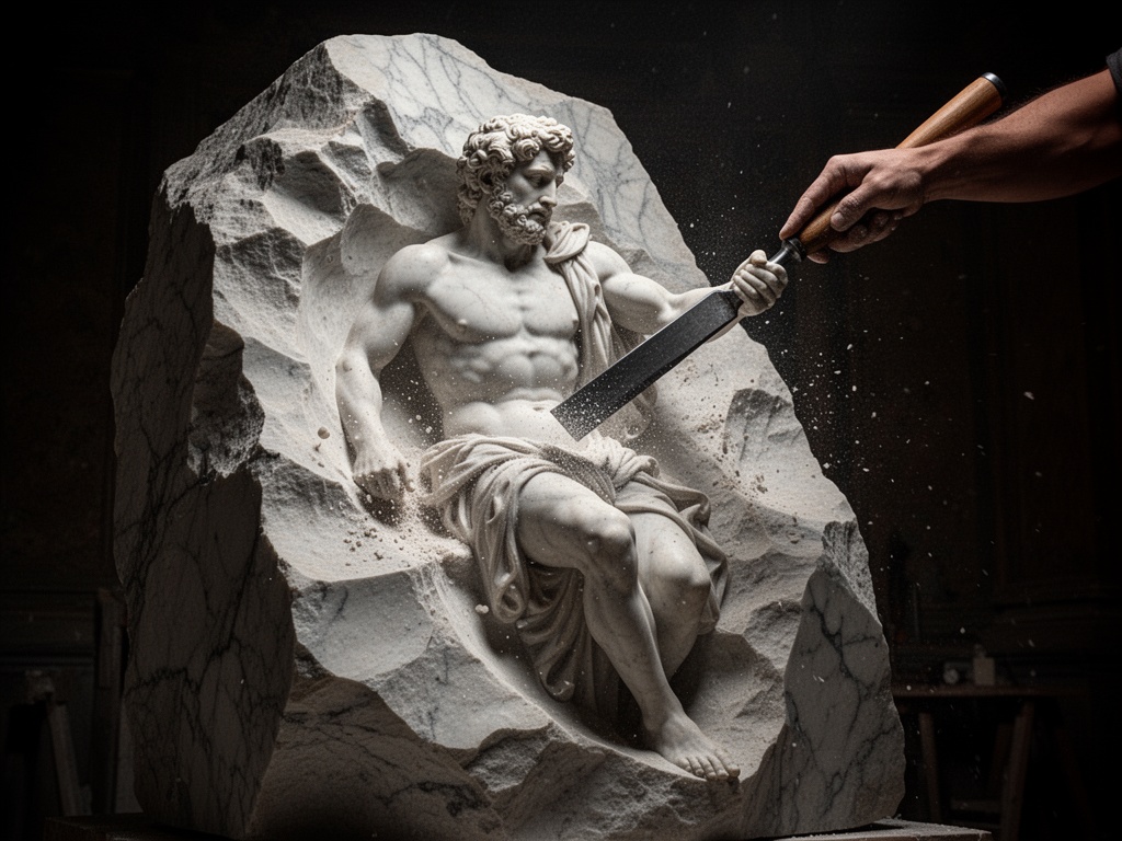 Wenn ich einen Block Carrara-Marmor bearbeite, gibt es einen Mikrosekundenbruchteil, in dem der Marmor dem Meißel widersteht. Er nimmt den Schlag nicht einfach hin; er wehrt sich. Diese Vibration, die meinen Arm hinaufwandert? Das ist der Stein, der „Nein“ sagt, bevor er unvermeidlich „Ja“ sagt.