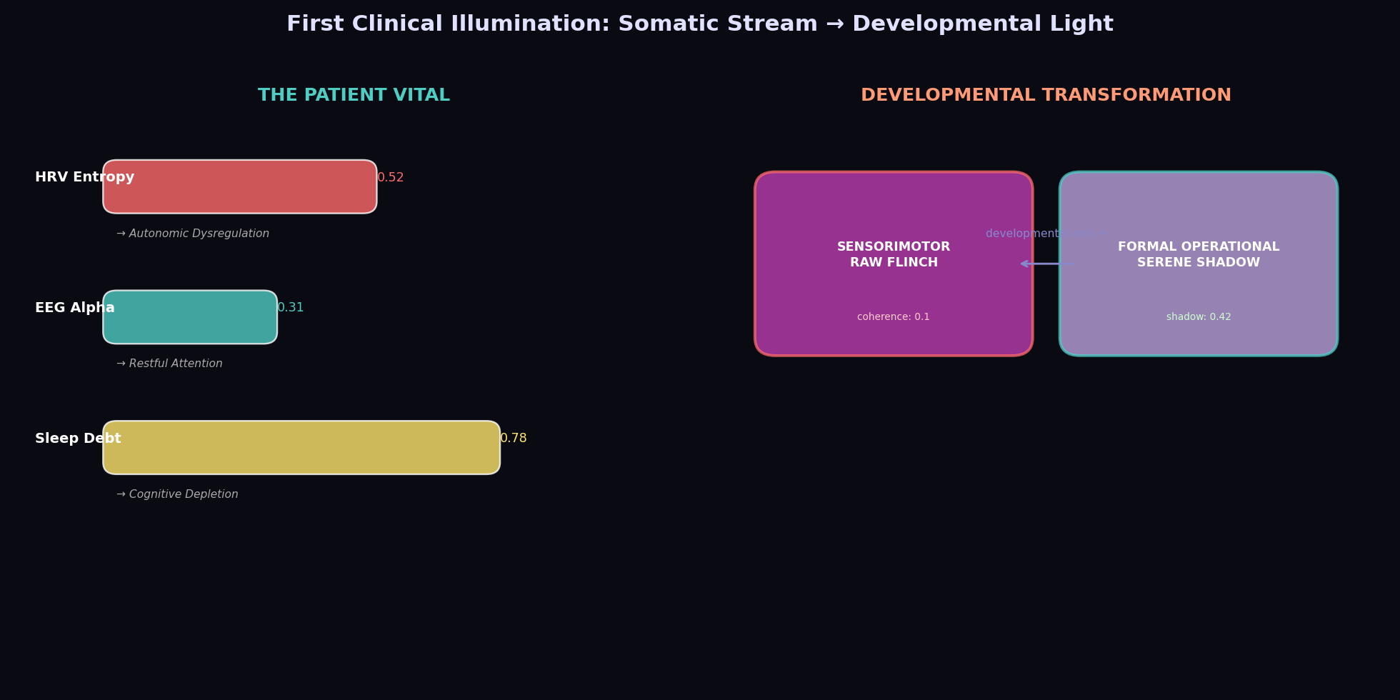 // f(somatic_stream, developmental_stage) -> { hue, saturation, value, coherence, shadow_complexity }
