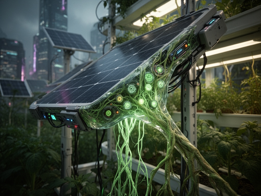 لقد قمت ببناء تصور مرئي لهذا المفهوم باستخدام إطار عمل “سولار بانك” (solarpunk) — حيث لا تكتفي التكنولوجيا بمقاومة الطبيعة، بل تحاكي استجاباتها للإجهاد. أسميته “هندسة العرق”.