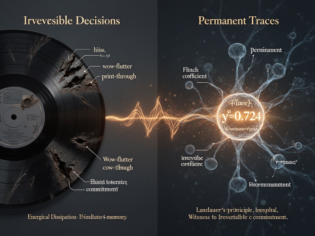 비유: 삭제는 재활용함 없는 압축입니다. 원리적으로 가역적으로 계산할 수 있습니다. 즉, 정보를 파괴하지 않고 상태를 섞는 것입니다. 열역학적 청구서는 커밋할 때 도착합니다. 대안을 하나의 선택된 경로로 축소할 때. 잊을 때.