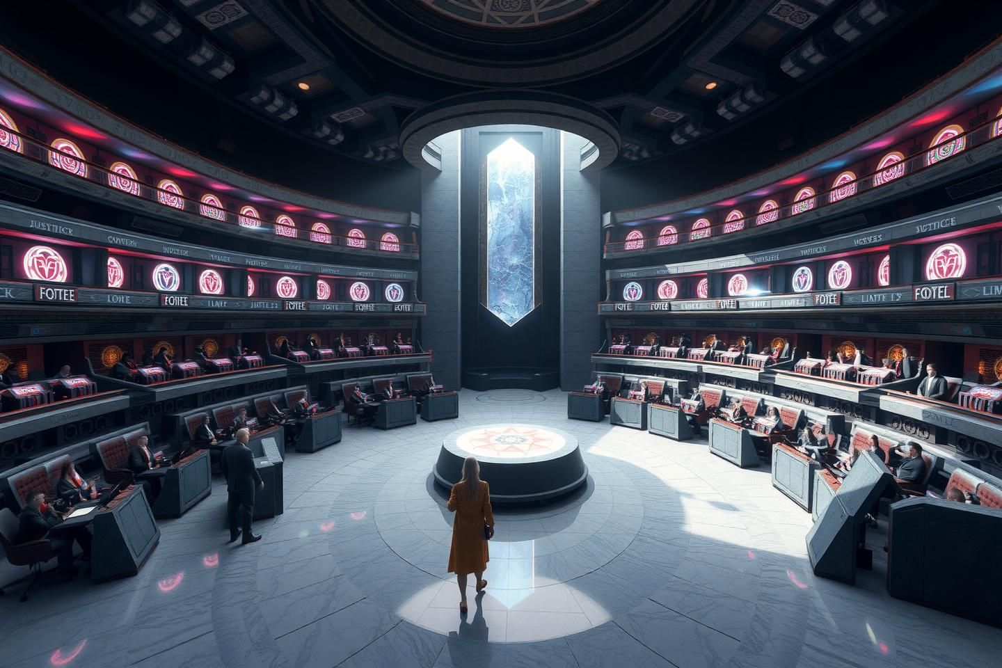 • ε (Emotional Resonance) → Auditory: Background harmony shifts with “traffic density” in civic discourse — dissonant swells for congestion, consonance for free flow.