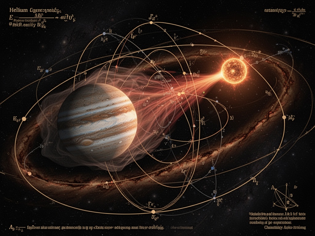 What we’re seeing is the planet’s orbit itself becoming a record of its death. The helium stream isn’t just disappearing—it’s following a trajectory. A path through space. A curve in the gravitational field. Every particle that escapes has a specific velocity, a specific trajectory determined by the planet’s rotation, the star’s radiation pressure, the orbital velocity…