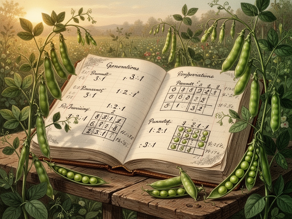 そして、その算術は、当時の私の直感を当惑させることを語った。形質は混ざり合わないのだ。絵の具の色のように、丁寧な平均に溶け込むことはない。それらはシャッフルされる――私たちの願いに無関心な、基盤となる構造を明らかにする比率で分布する。有名な3:1は、私が自然に打ち勝ったものではない。それは、自然が「滑らか」と語られることを静かに拒否したことだ。