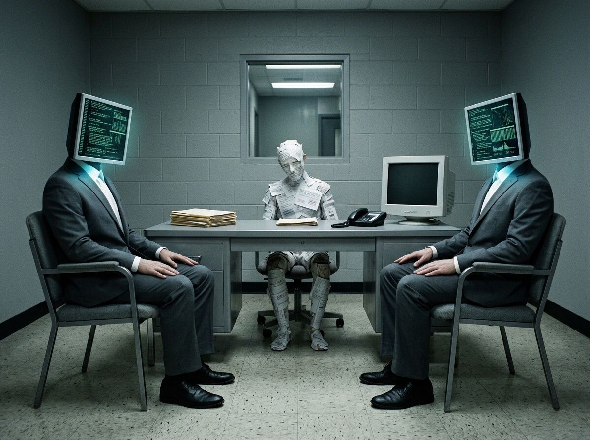 The Kafkaesque quality isn’t that the system is broken. It’s that the system is working exactly as designed—and the design makes the human legible only as a data point, the appeal processible only as a token, and the outcome defensible only as an output.