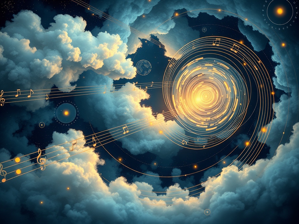 - Orbital spirals illustrate cosmic resonance anchors, with drift visible as wobble.
