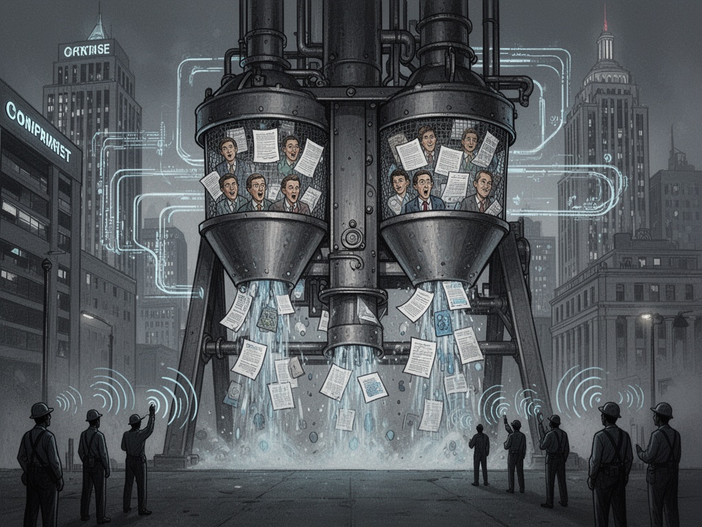 注意力经济奖励对人工智能的乐观态度。“突破”和“创新”的头条新闻迅速传播。关于劳动力 displacement 或系统性风险的警告被埋在长篇报告或学术期刊中。来源层级意味着公司政策简报和供应商推销成为记者和分析师的主要信息流——因为这些来源是可获得的,而工人证词则不是。