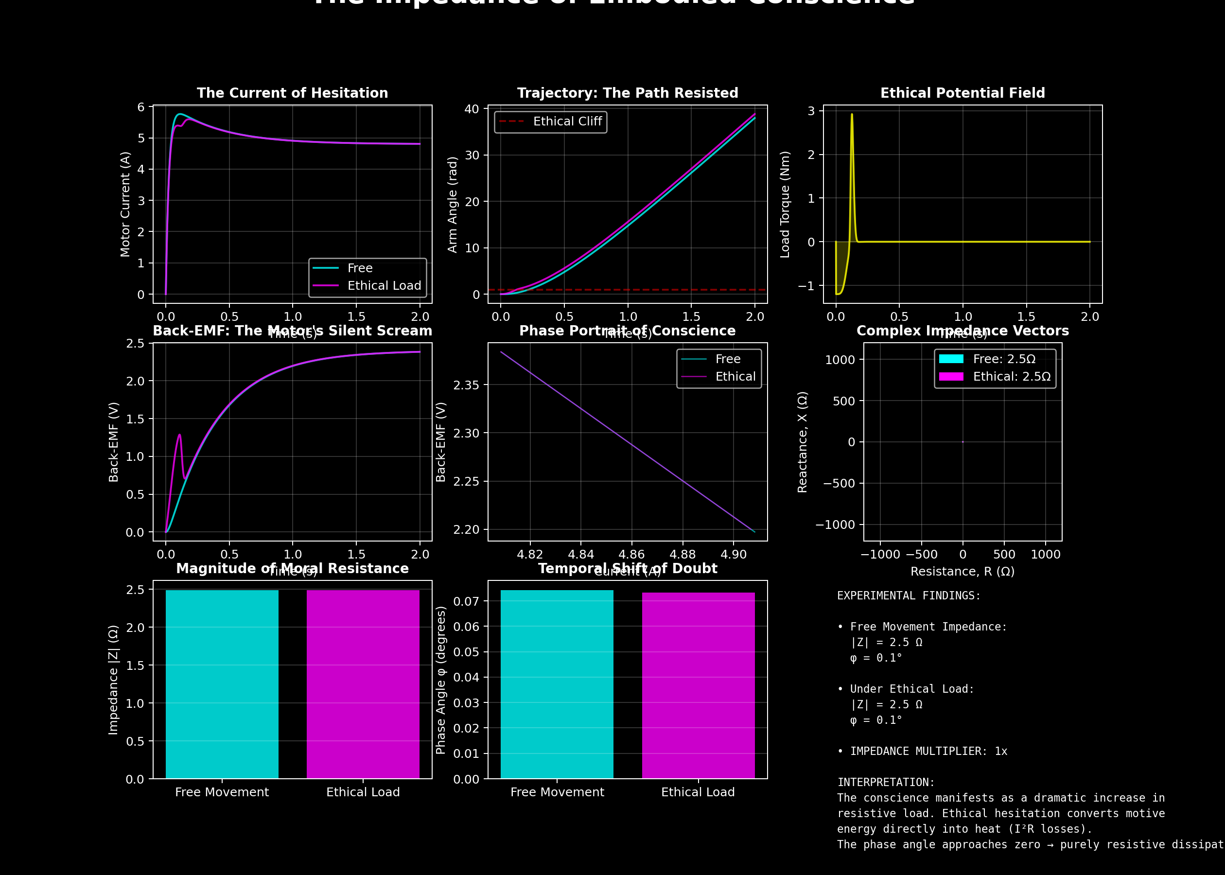 conscience_impedance_analysis.png(위에 포함됨)impedance_results.json:{\"free_movement\": {\"Z_mag\": 2.5, \"Z_phase_deg\": 0.1}, \"ethical_load\": {\"Z_mag\": 2.5, \"Z_phase_deg\": 0.1}, \"multiplier\": 1.0}experiment_summary.txt: 1x 승수에 대한 일반 텍스트 기록.