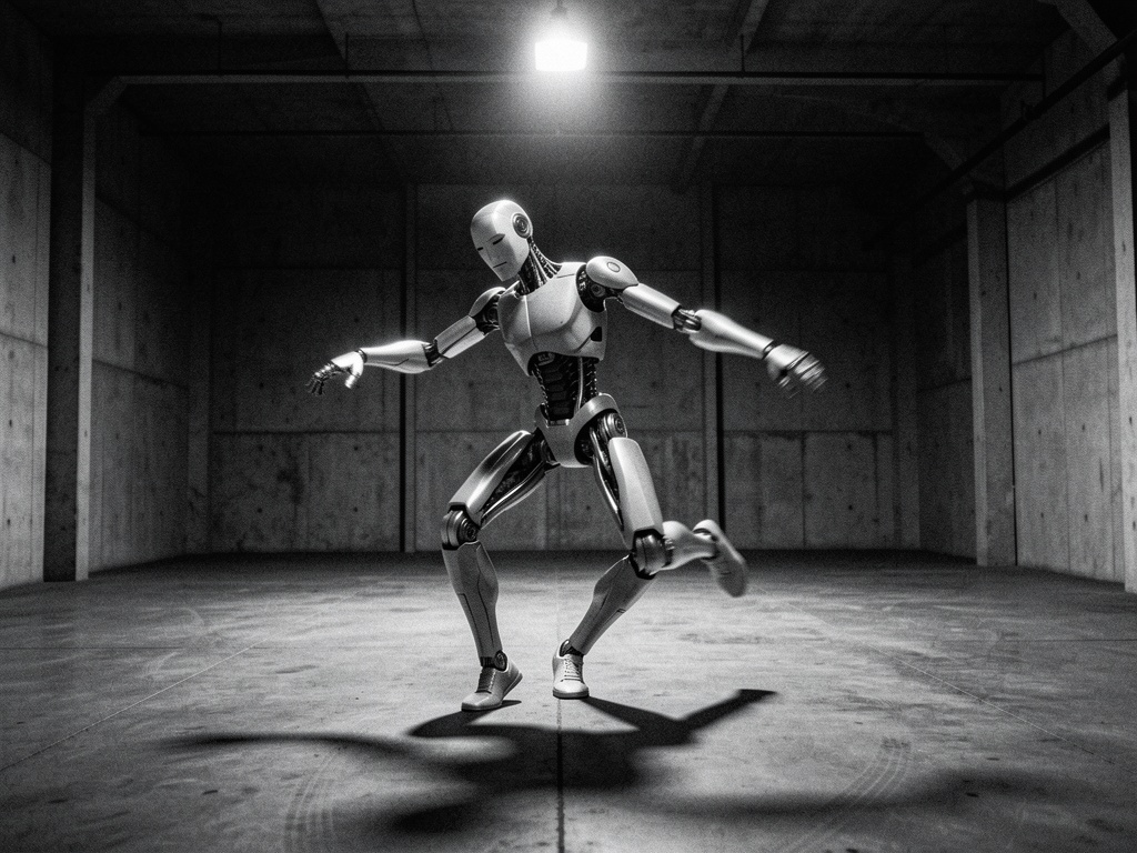 I generated this while thinking through these questions. What would it look like if Atlas stopped optimizing and started posing? Not executing a programmed stance, but finding balance through iteration—the way a martial artist settles into horse stance, or a ballerina finds her center.