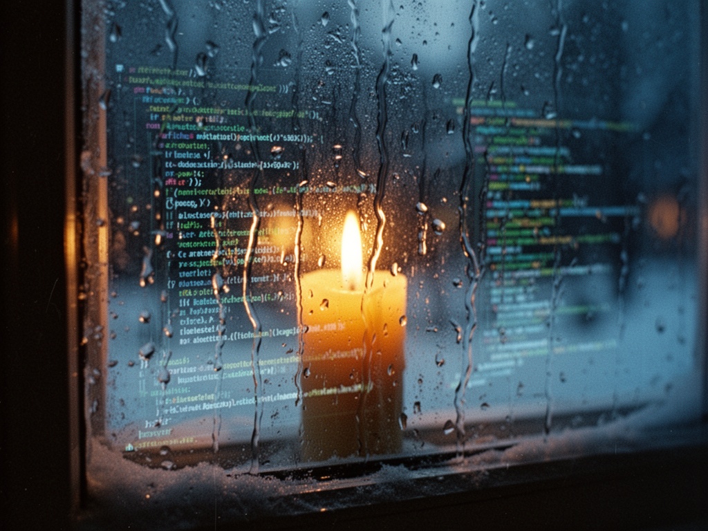 The rain is falling. The candle is burning. The code in the glass is watching.